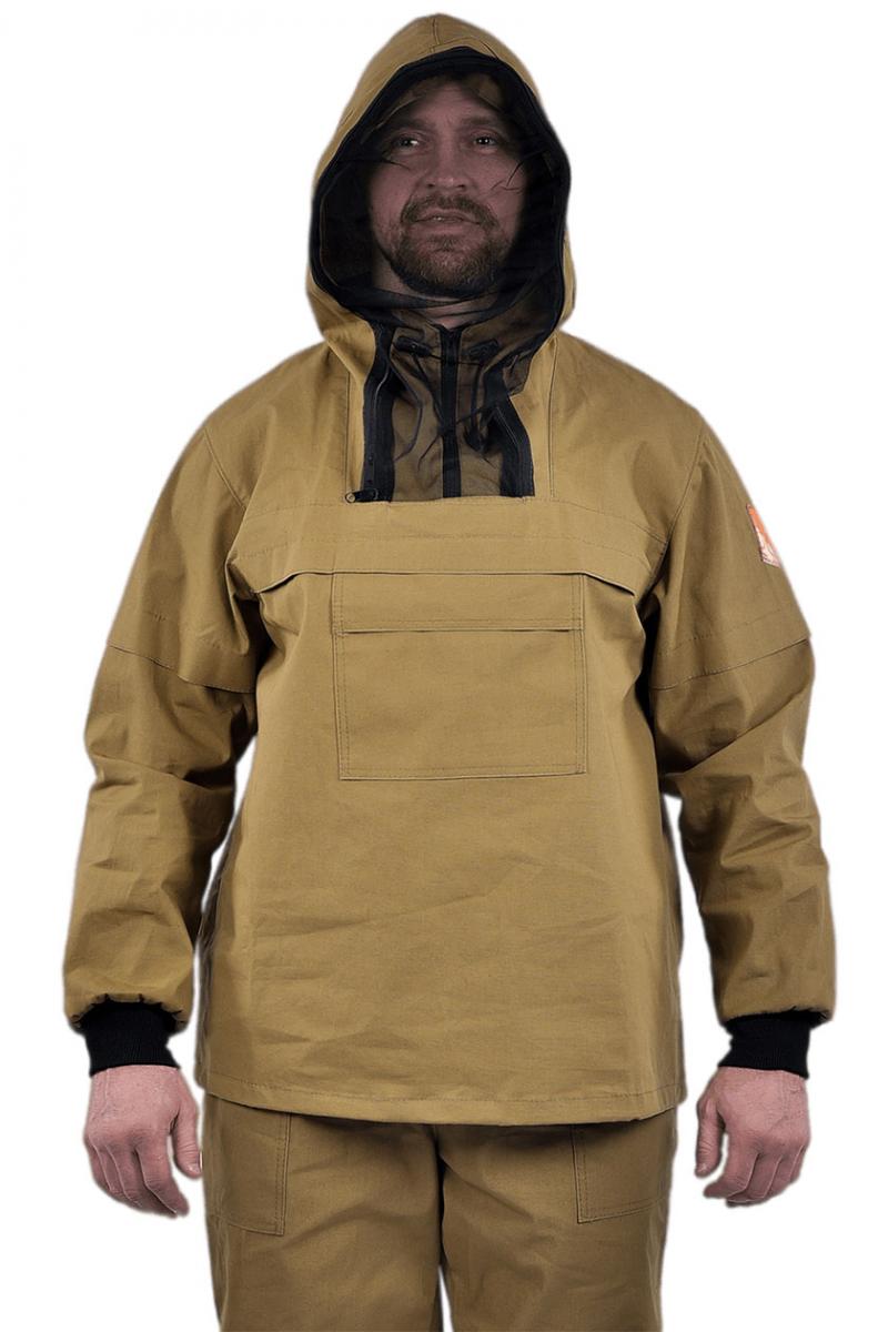 ➠ Куртка прямого силуэта с отрезными кокетками полочки, с капюшоном сложной конструкции, исключающей проникновение насекомых под одежду. Капюшон с противомоскитной сеткой. Низ куртки стягивается эластичным шнуром с фиксатором. Рукава втачные, с трикотажными манжетами-напульсниками.